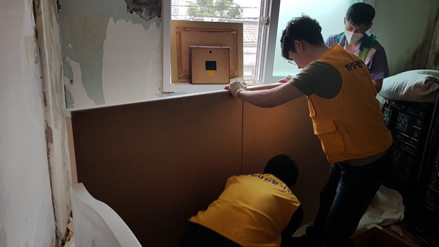 화성개발은 지난 16일 대한주택건설협회가 주관하는 2018년 국가유공자 노후주택 보수지원 사업에 참여하였다. 화성개발은 화성자원봉사단과 함께 6.25참전 유공자 김성동(1928년생)씨가 살고 있는 대구 동구 화랑로(효목동)소재 아파트를 방문하여 싱크대,샷시, 장판 등의 교체와 화장실 수리등 노후주택에 대한 보수지원 공사를 실시하였다. |