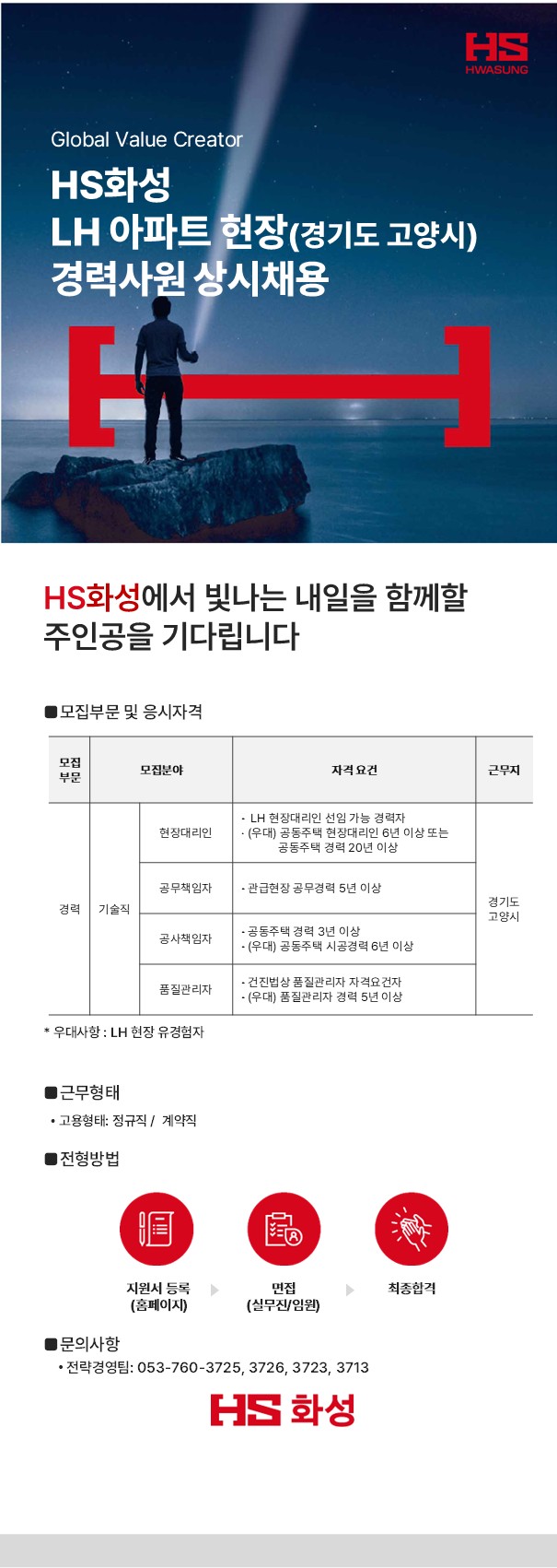 LH 아파트(경기도 고양시) 현장 채용(현장대리인,공무,시공,품질)